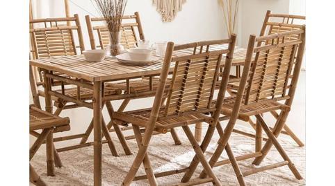 *4 Yakku Bamboo Folding Chairs. Yakku Bamboo Folding Dining Chairs. Yakku bamboo folding chairs create a fresh and natural ambiance. With a carefully crafted design, this chair stands out for its rustic and inviting style. Its frame is made of high-quality bamboo, providing a lightweight yet sturdy aesthetic. The seat and backrest offer surprising comfort thanks to the flexibility and adaptability of the material. The simple lines and warm bamboo hue make this chair a versatile addition, easily integrated into various décor styles. Being foldable, you can store it away without taking up much space and bring it out only when needed.