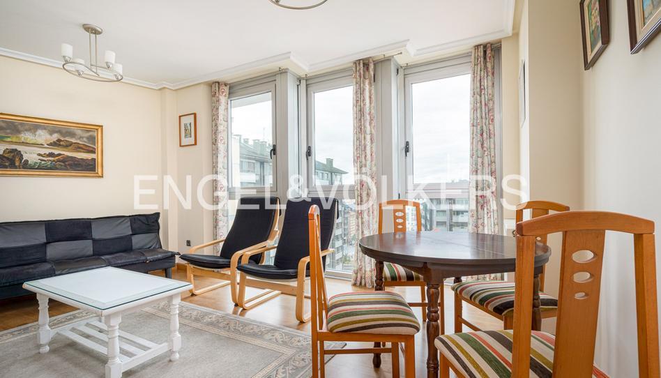Saliendo de la cocina, por la izquierda se accede a un luminoso salón de muy buen tamaño, ideal para relajarse y disfrutar del día a día. Es un espacio cómodo y versátil, lo bastante amplio como para incorporar una pequeña mesa con sillas sin perder sensación de amplitud. El salón cuenta con ventanas de suelo a techo y, gracias a estar en una planta alta, ofrece bellas vistas de la ciudad, incluso una vista parcial de la famosa calle Gascona y su clásico tonel de sidra.