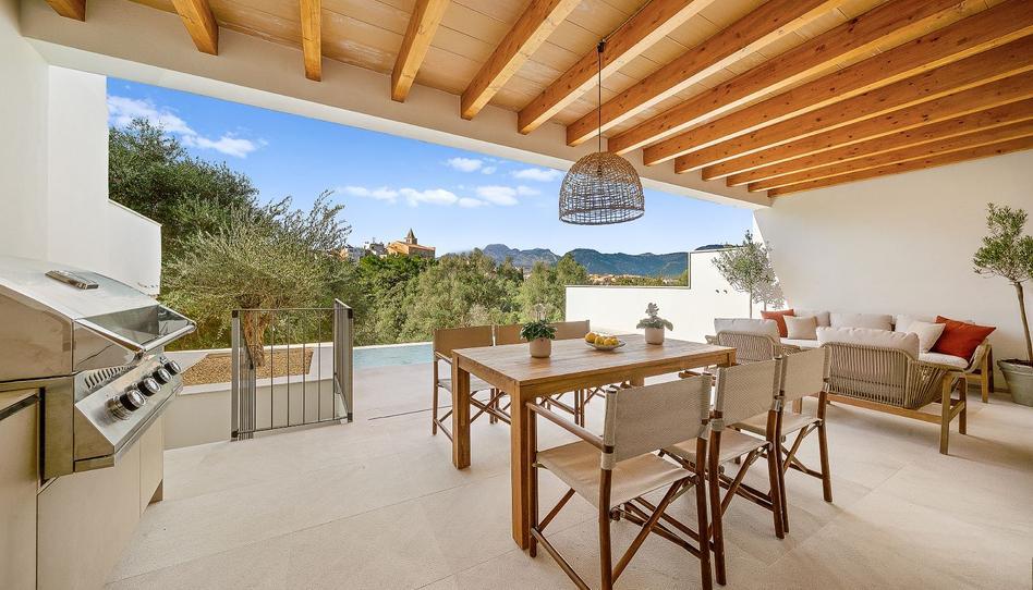Beautifully renovated house in Caimari with a tourist rental license, offering 201 m² of living space on a 172 m² plot. The house is divided into two floors with three bedrooms and two bathrooms, a swimming pool, a 40 m² patio with an outdoor dining area and kitchen, and a 20 m² terrace on the first floor, all boasting fantastic views of the Serra de Tramuntana mountain range. Recently renovated, the property features high-quality finishes, including double-glazed wooden windows, aerothermal heating with radiators, underfloor heating, a fireplace, a storage room, reverse osmosis water purification system, microcement flooring, and a double kitchen with an integrated laundry area and Siemens appliances. The house is charming with its exposed stone beams and walls, unique details such as the rock feature on the bathroom wall, and its welcoming decor.