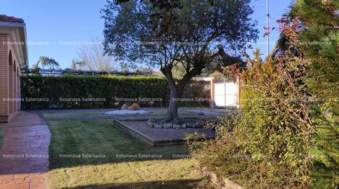Excellent villa for sale in Cuatro Calzadas, 14 km from Salamanca. It has two floors, five bedrooms, and three bathrooms. One spacious bedroom features an outdoor terrace and en-suite bathroom. The property includes two porches, a garage, a garden with walkways, two sheds, a woodshed, a water tank, and automatic irrigation. The 1000 sq m plot is enclosed by a mature hedge.