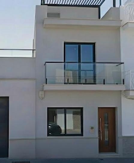 Upstairs, three bedrooms await: two doubles and one generously sized single. The master bedroom features a balcony and a built-in wooden wardrobe that maximizes space. The large, accessible rooftop terrace is perfect for enjoying the sun and hosting outdoor gatherings.