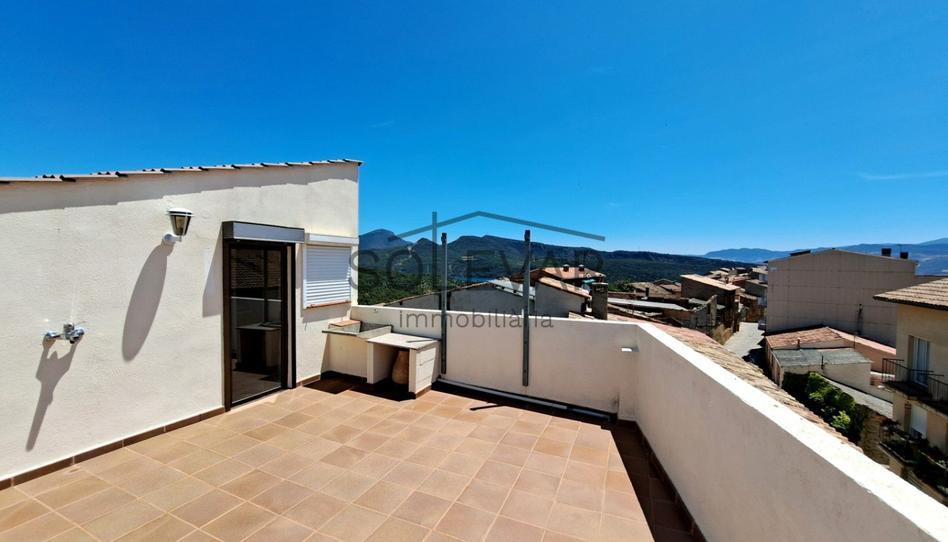 Cozy house in the village of Talarn. It has three floors. On the ground floor, there is a garage and storage room. On the first floor, there is a large bedroom, a full bathroom with shower, a kitchen, and a large living/dining room with access to a small balcony. On the second floor, there are two large bedrooms and a full bathroom with shower. One of the bedrooms has access to a large terrace. At the top of the house, there is a large rooftop terrace with spectacular views and a small utility building.