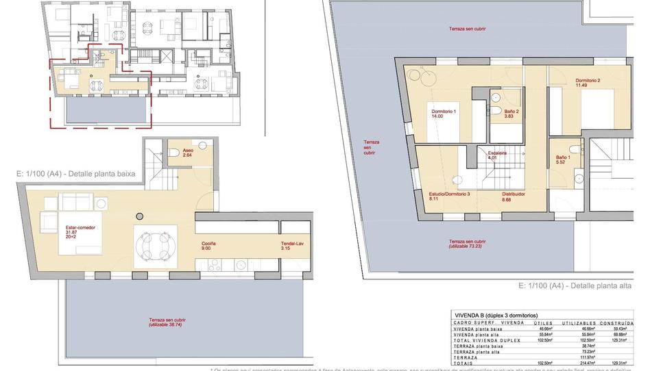 Descubre este exclusivo PISO DUPLEX de tres dormitorios, ideal para disfrutar del confort y la versatilidad en un entorno privilegiado. Con una superficie útil de 102 m2 y una espectacular terraza privada de 112 m2, esta vivienda se distribuye en dos plantas que ofrecen amplios espacios luminosos. El interior cuenta con un salón-comedor acogedor, cocina americana moderna equipada, lavadero funcional y dos baños completos más un aseo adicional. La propiedad presenta acabados elegantes como carpintería interior lacada en blanco y suelos combinados entre gres cerámico y tarima flotante. Además, goza de orientación este-oeste lo que proporciona luz natural durante todo el día; los sistemas modernos incluyen calefacción por suelo radiante gracias a aerotermia eficiente. Incluye armarios empotrados bien diseñados para maximizar almacenamiento así como trastero privado. La fachada está diseñada con aluminio anodizado climalit ofreciendo aislamiento acústico superior junto al acceso adaptado PMR. Facilidad absoluta: contarás también con plaza de garaje. Todo esto ubicado dentro de un residencial compuesto por catorce viviendas cercanas a todos los servicios esenciales. En pleno barrio Vista Alegre cerca de la Catedral y cerca de las zonas monumentales. Diseñadas para compradores exigentes que quieren calidad y comodidad en un sólo espacio.