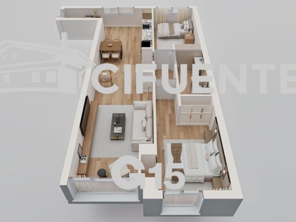 El PISO está amueblado con modernos muebles de diseño. La COCINA dispone de equipamiento completo de muebles y electrodomésticos de primera calidad.