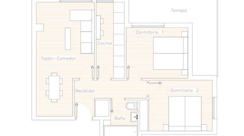 Sta. LUCIA – Piso frente al Colegio Escolapios. 78 m2 distribuidos en 2 dormitorios, salón, cocina y baño. Dispone de terraza grande (+10m2) y trastero. Calefacción central y agua caliente central con contador individual. Exterior Norte-Oeste. Ascensor a cota 0.