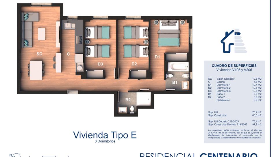 Promoción de nueva construcción en Los Barrios ” Residencial Centenario ” ( frente al Mercadona ) Piso de 3 dormitorios y 2 baños (V105) 205.180+IVA . Excelente calidades . Plaza de garaje opcional 18.000€ + IVA . Para más información contacte con