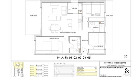 En exclusiva …!!! Nueva promoción de viviendas de obra nueva . Nuevo Residencial ” Corts Valencianes ” . Vivienda tipo , la cual consta de tres habitaciones dobles, 2 baños , uno de ellos en suite en habitación principal , salón comedor con cocina equipada con muebles altos y bajos , campana extractora extraíble , placa de vitrocerámica y horno , lavadero / galería . Pre-Instalación de climatización para frio y calor. Armarios empotrados con puertas abatibles o correderas en dormitorios color blanco . Pavimento de tarima laminada en salón y dormitorios. Baños y terrazas en gres. De la vivienda tipo disponemos de varias alturas y precios. Promoción a tan solo 700 metros del paseo y de la playa . No dude en contactar con nosotros para más información.
