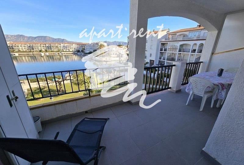 Apartamento moderno en la segunda planta (sin ascensor) con unas vistas despejadas espectaculares a las montañas, a la marina de Empuriabrava y al jardín con piscina de la residencia.
