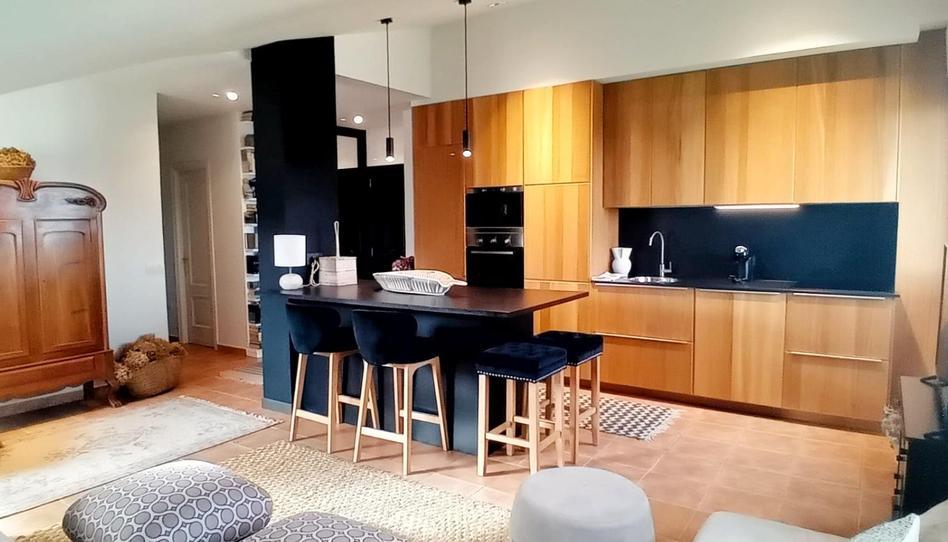 – Amplio salón con cocina americana, totalmente equipada con electrodomésticos panelados, isla y una elegante combinación de madera natural y tonos oscuros.